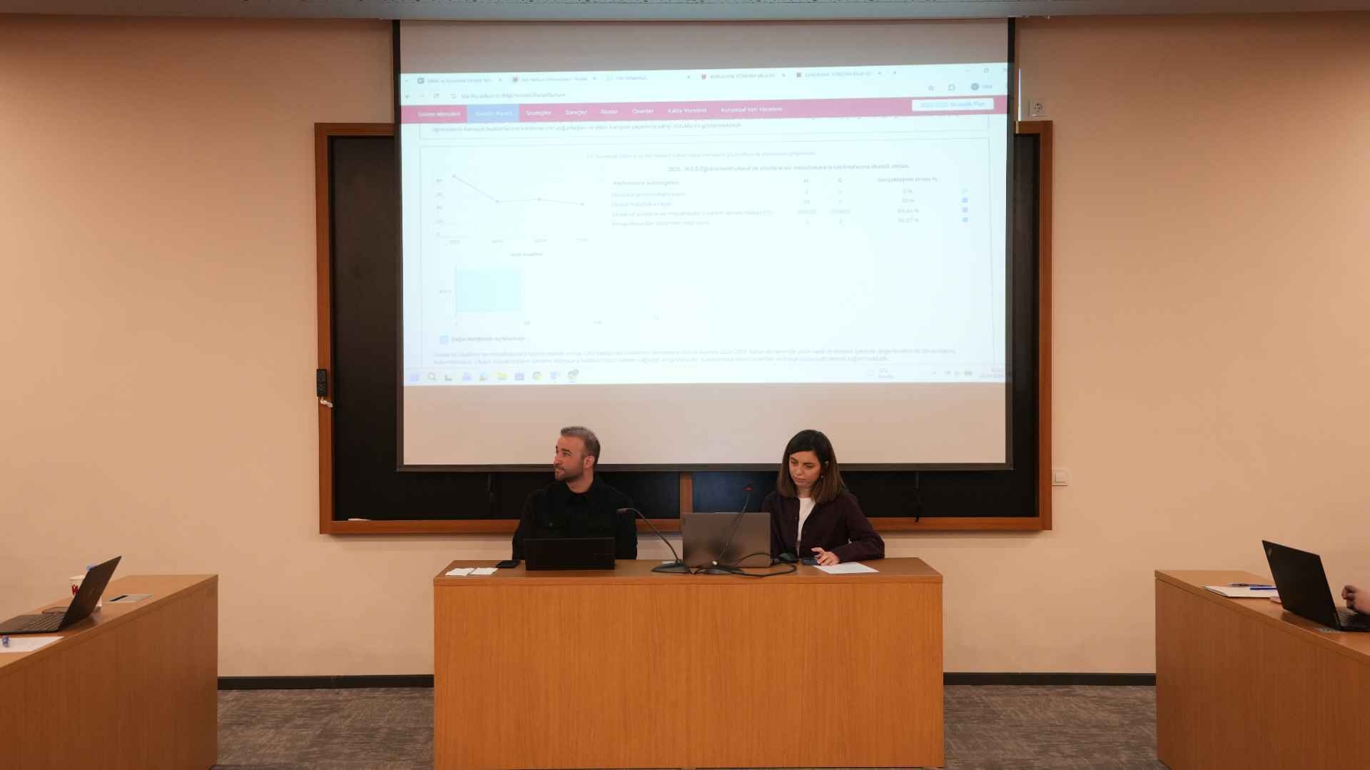 İdari birim yöneticileri, kendi birimlerinin stratejik planda yer alan hedeflerine ilişkin gerçekleşme oranlarını esas alarak performans sunumlarını gerçekleştirdi. Her birime ayrılan sürede sunumların ardından kısa değerlendirme ve geri bildirim bölümleri de yer aldı. Toplantıda, güçlü yönlerin sürdürülebilirliğinin sağlanması ve gelişime açık alanlar için aksiyon planlarının oluşturulması konularına da odaklanıldı.